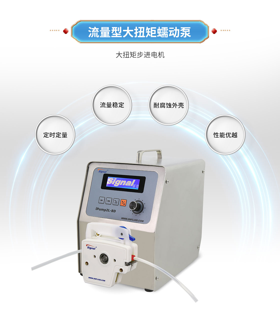 2.大扭矩步进电机驱动,适合多泵头串联使用;