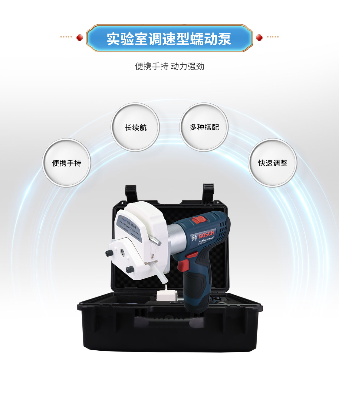 ●单电池续航时间 30~40min(具体续航时间视所用泵头及软管不同有所变化)