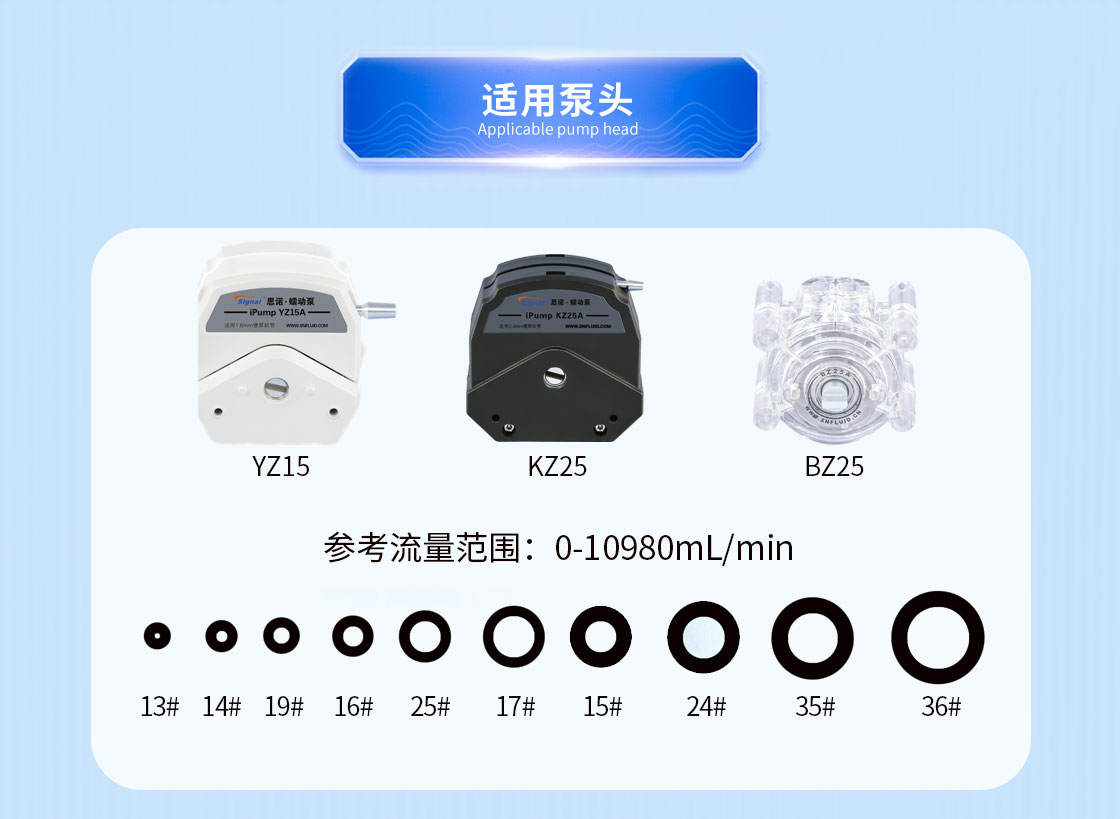 ●可装配多种型号泵头,更换软管简单方便,流量范围广泛。